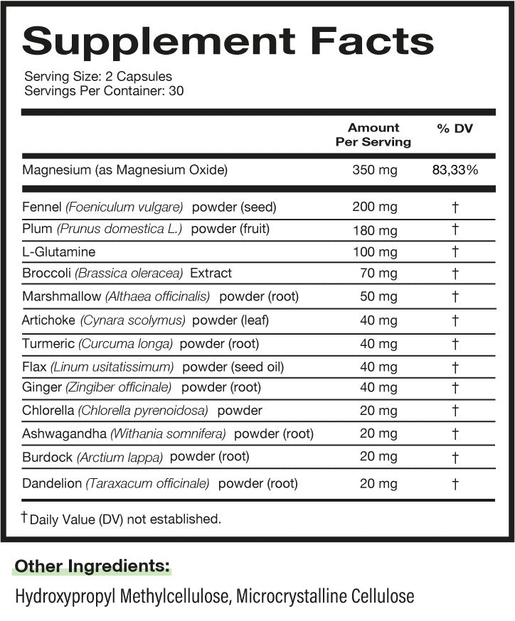 To maintain a healthy body, one needs to be able to assimilate efficiently the food absorbed and eliminate the waste products. The final stages of the digestion process take place in the colon, where water is eliminated, vitamins produced and waste removed. Unfortunately, modern food, consisting mainly of processed products, produces indigestible waste in the intestine that clogs and gradually slows down the natural digestion process. A malfunction of the digestive system is often the root cause of a number of complications such as irritable bowel syndrome (IBS), headache, stomach pain, loss of appetite or weight gain.